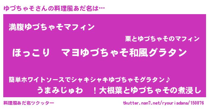 | 男性向けラノベタイトル風あだ名 | 『この素晴らしい世界にゆづちゃそを!』 |