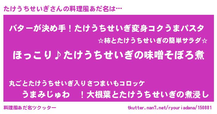 | ヘコむあだ名 | 『たけもー』『なまこ酢』 |