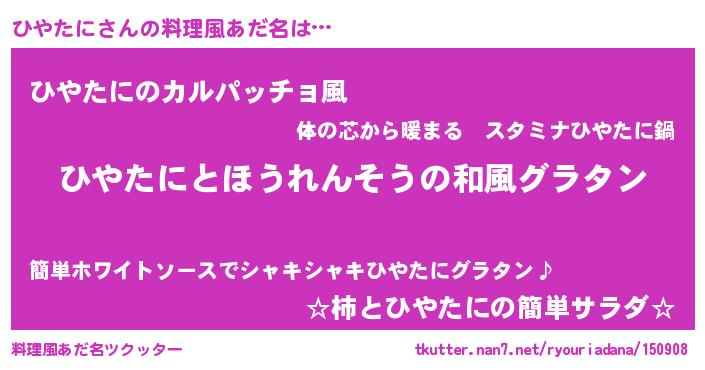 | ヒーロー風カッコイイあだ名 | 『仮面ヒヤダー』『ウルトラひやたにマン』 |