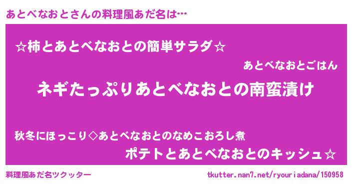 | 胡散臭い通販商品みたいなあだ名 | 『億万長者になれる水晶球…その名も「あとべなおと」』 |