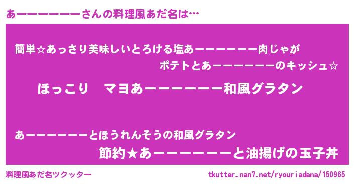 | 男性向けラノベタイトル風あだ名 | 『この素晴らしい世界にあーーーーーーを!』 |