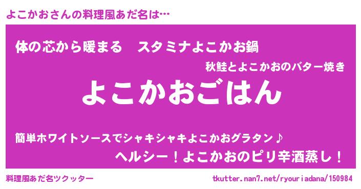 | 意味不明あだ名 | 『しいたけ科よこかお属』『自称よこかお』 |