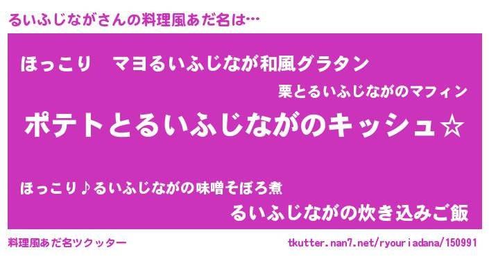 | 男性向けラノベタイトル風あだ名 | 『るいふじながの嫁は女の子じゃないと思った?』 |