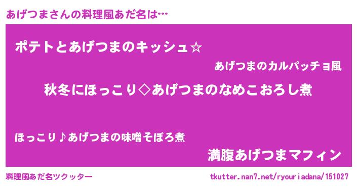 | 意味不明あだ名 | 『とにかく怪しいあげつま』 |