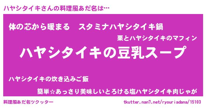| ピコ太郎風あだ名 | 『ハヤ五郎』『ピハ太郎』『ピコハ郎』 |