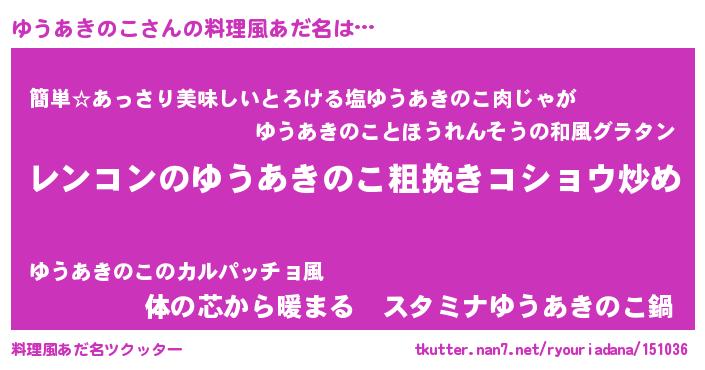 | 意味不明あだ名 | 『自称ゆうあきのこ』 |