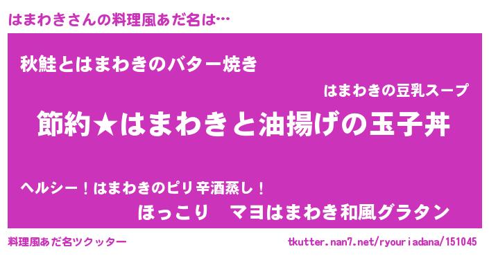 | 男性向けラノベタイトル風あだ名 | 『はまわきの憂鬱』 |