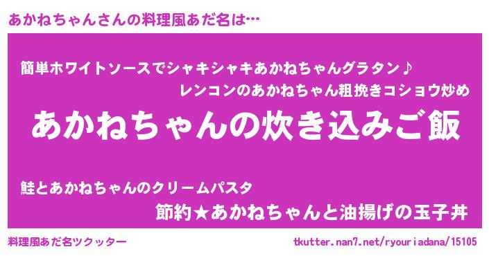| 男性向けラノベタイトル風あだ名 | 『うちのあかねちゃんが世界を掌握している!』 |