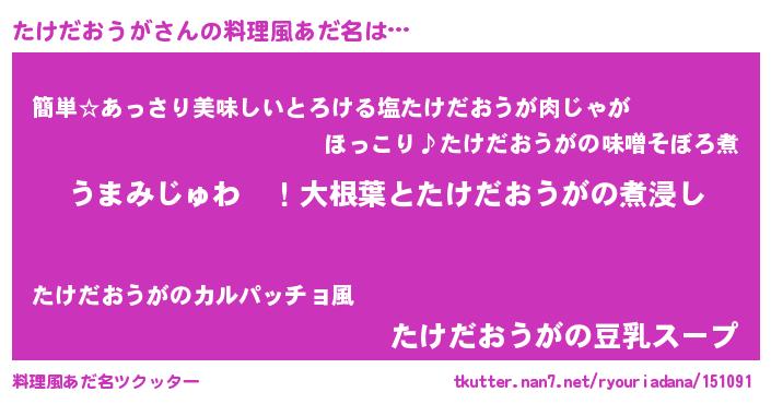 | 可愛いあだ名 | 『たけちー』『たけだおうがママ』 |