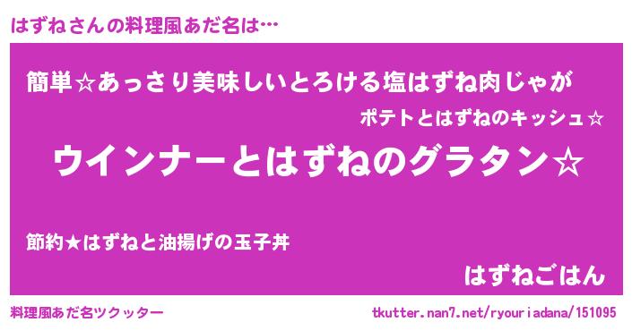 | ヘコむあだ名 | 『豆乳』『はずね(爆)』『はず太郎』 |