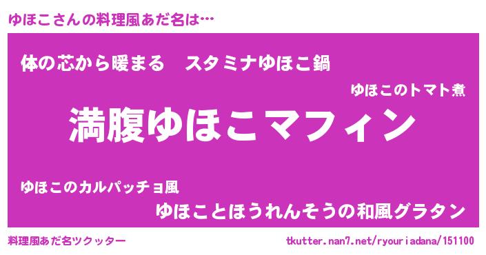 | ヘコむあだ名 | 『ゆほこ(笑)』『牛乳』『ゆほにー』 |