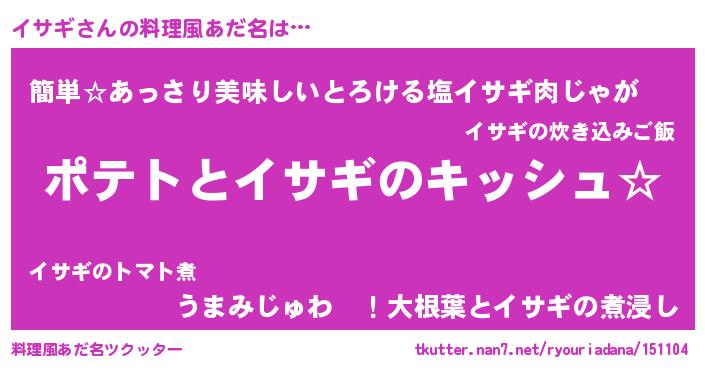 | 女子向けラノベタイトル風あだ名 | 『イサギの卵を拾いまして』 |