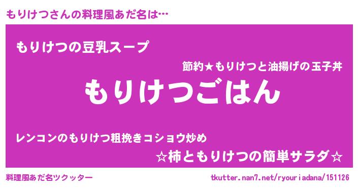 | 意味不明あだ名 | 『なめこ科もりけつ属』『自称もりけつ』 |