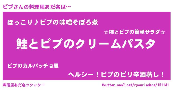 | 男性向けラノベタイトル風あだ名 | 『ノーゲーム・ノービブ』『ビブの憂鬱』 |