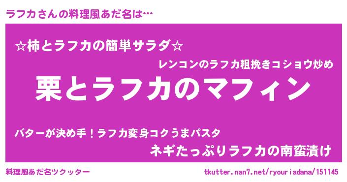 | ヘコむあだ名 | 『ラフっふぃ~』『ラフカ(笑)』 |