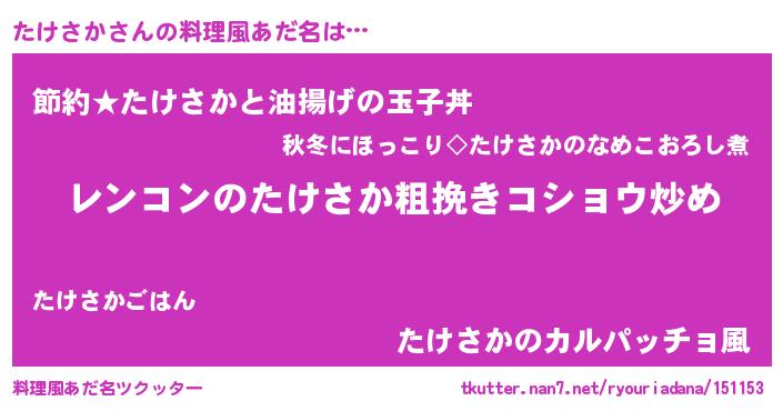 | ヘコむあだ名 | 『たけにー』『たけさか(震え声)』 |