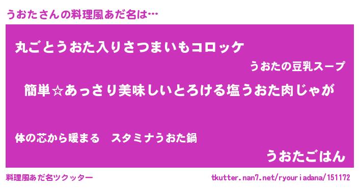| 意味不明あだ名 | 『永久保存うおた』『めかぶ科うおた属』 |