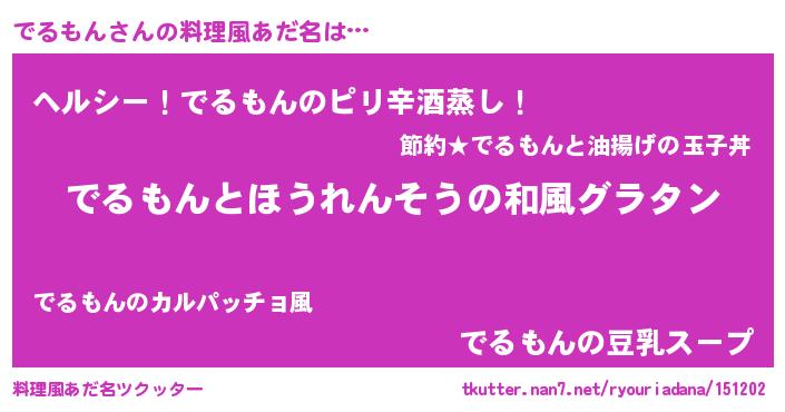 | 男性向けラノベタイトル風あだ名 | 『でるもん~年齢イコール彼女いない歴の魔法使い~』 |