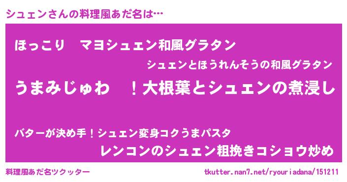 | 意味不明あだ名 | 『シュェンフォーエバー』『自称シュェン』 |