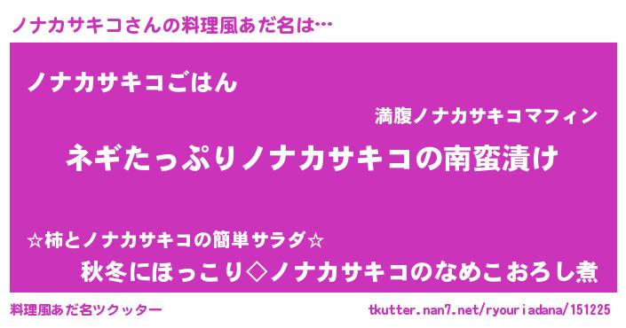 女子向けラノベタイトル風あだ名 | 『誰かこのノナカサキコを説明してください! ~契約から始まるウェディング~』 |