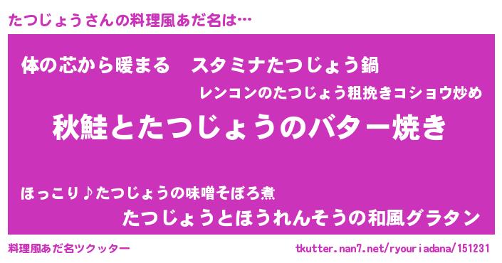 | 胡散臭い通販商品みたいなあだ名 | 『来世でも幸せになれる水素水…その名も「たつじょう」』 |