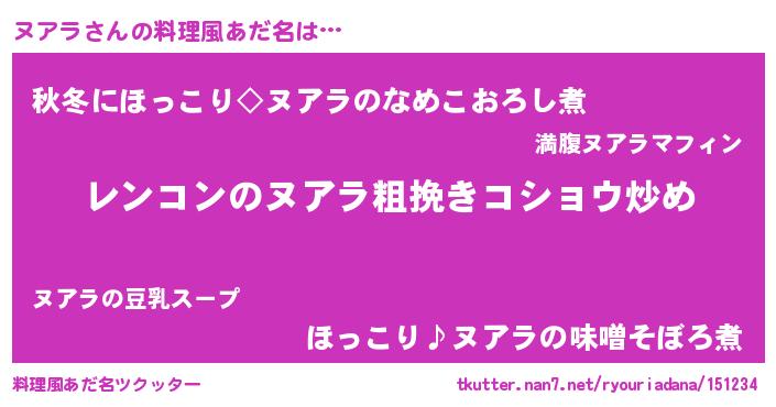 | ヘコむあだ名 | 『ヌアにー』『ヌアラ(爆)』『ヌアお』 |