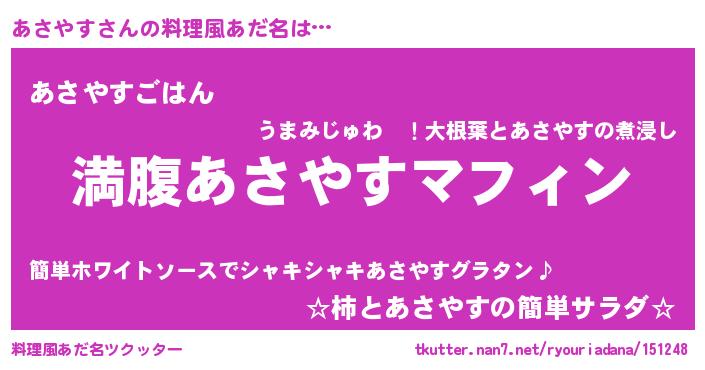 | ヘコむあだ名 | 『あさやす(笑)』『牛乳』『あさ太郎』 |