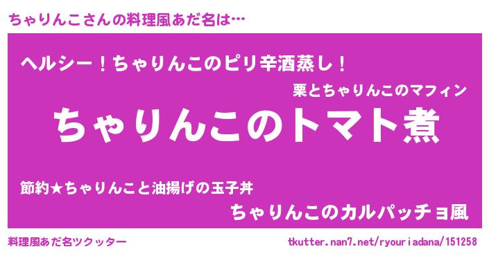ちゃりんこさんの料理風あだ名をツクッター!