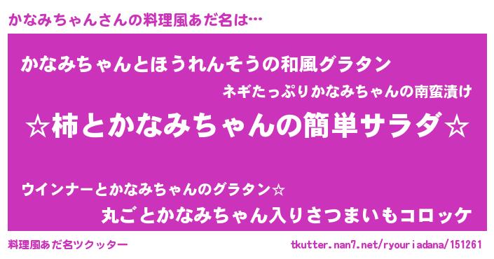 | ヒーロー風カッコイイあだ名 | 『仮面カナダー』『スーパーカナミチャン』 |