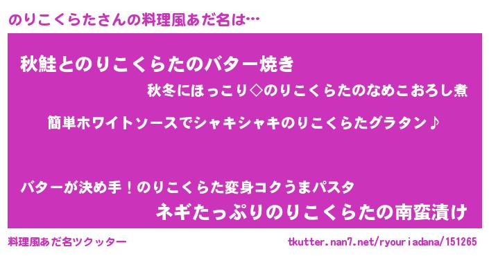 | ヘコむあだ名 | 『のりぷりん』『のりこくらた(笑)』 |