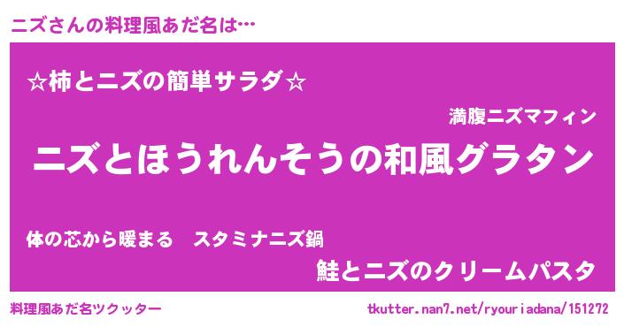 | 女子向けラノベタイトル風あだ名 | 『ニズの玉の輿計画!』『死神ニズの再婚』 |