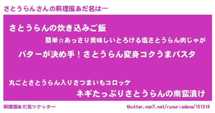 | ヘコむあだ名 | 『さとっふぃ~』『さとうらん(笑)』 |