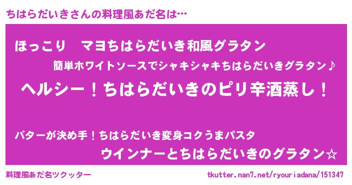 | 意味不明あだ名 | 『自称ちはらだいき』 |