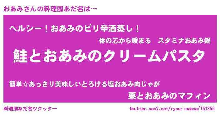 | 意味不明あだ名 | 『眠気覚ましガムおあみ味』『自称おあみ』 |