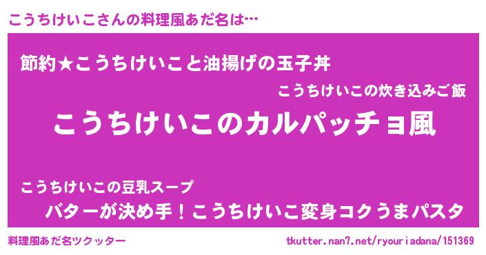 | 意味不明あだ名 | 『住所不定無職こうちけいこ(85歳)』 |