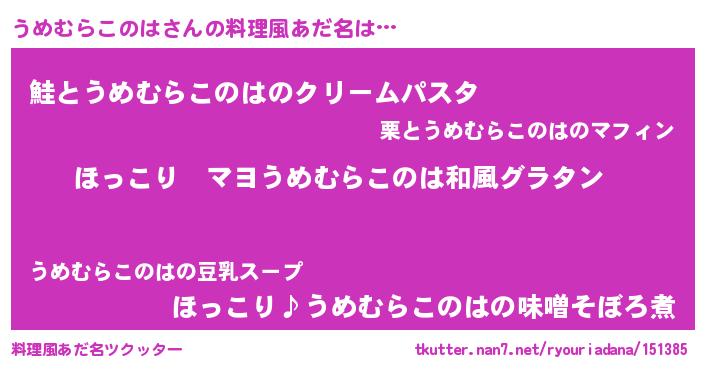 | 男性向けラノベタイトル風あだ名 | 『この素晴らしい世界にうめむらこのはを!』 |