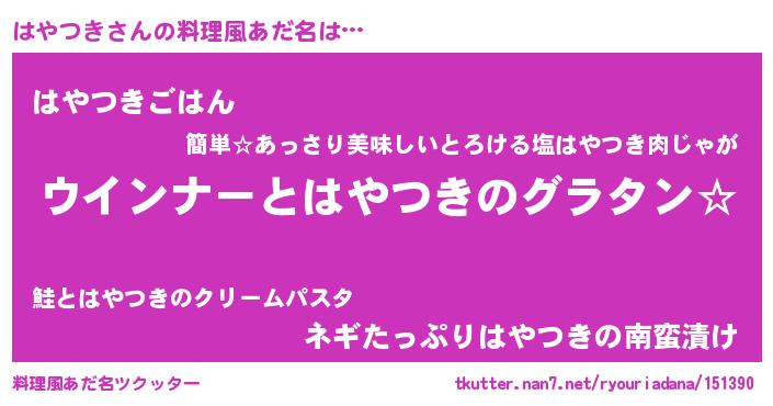 ヘコむあだ名 | 『なまこ酢』『はやにー』『はやを』 |