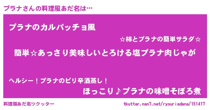 | ヘコむあだ名 | 『プラナ(笑)』『プラもー』『プラお』 |