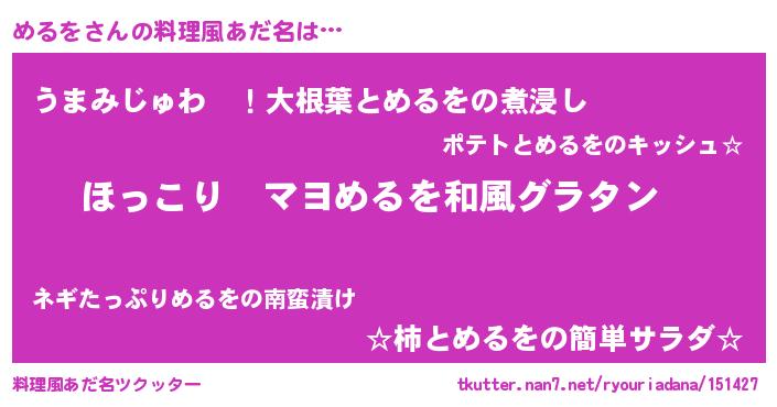 | 意味不明あだ名 | 『住所不定無職めるを(12歳)』 |