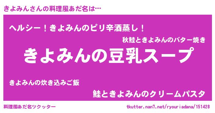 | 胡散臭い通販商品みたいなあだ名 | 『信頼と実績のサプリメント…その名も「きよみん」』 |