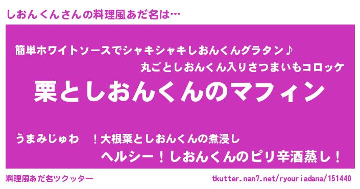 | 胡散臭い通販商品みたいなあだ名 | 『信頼と実績のサプリメント…その名も「しおんくん」』 |
