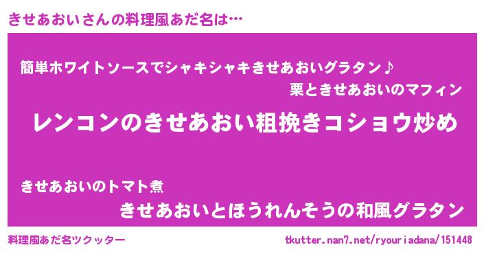 | ヘコむあだ名 | 『きせぷりん』『酢こんぶ』 |