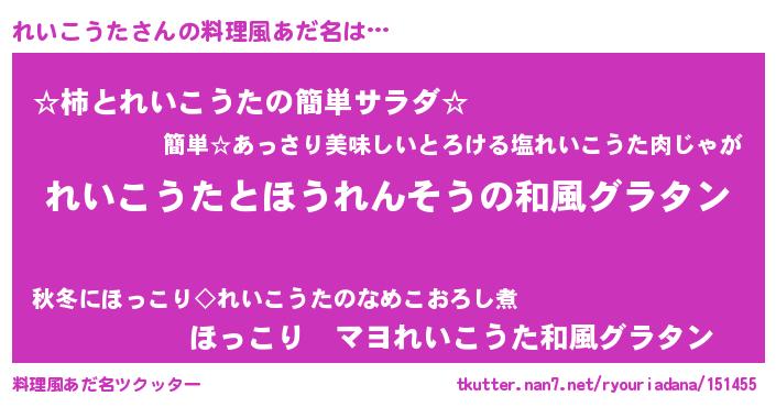 | ヘコむあだ名 | 『れいこうた(震え声)』『レバニラ』 |