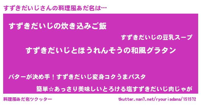 | 男性向けラノベタイトル風あだ名 | 『すずきだいじ~年齢イコール彼女いない歴の魔法使い~』 |