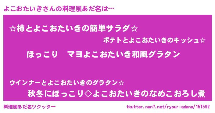 | 意味不明あだ名 | 『住所不定無職よこおたいき(43歳)』 |