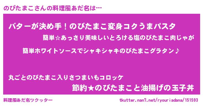 | 男性向けラノベタイトル風あだ名 | 『のびたまこの嫁は女の子じゃないと思った?』 |