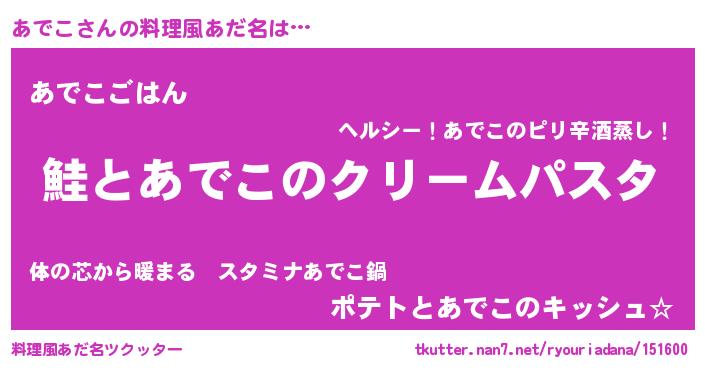 | 女子向けラノベタイトル風あだ名 | 『死神あでこの再婚』『闇のあでこ』 |