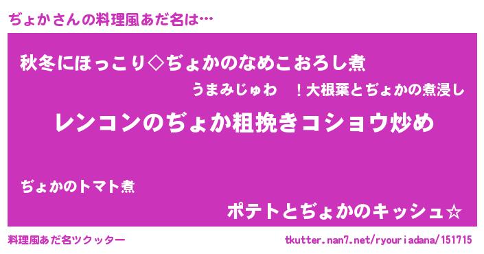 | 男性向けラノベタイトル風あだ名 | 『魔法科高校のぢょか』 |
