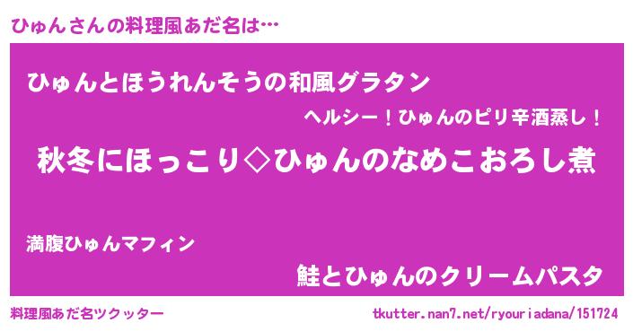| 意味不明あだ名 | 『ニラ科ひゅん属』『自称ひゅん』 |
