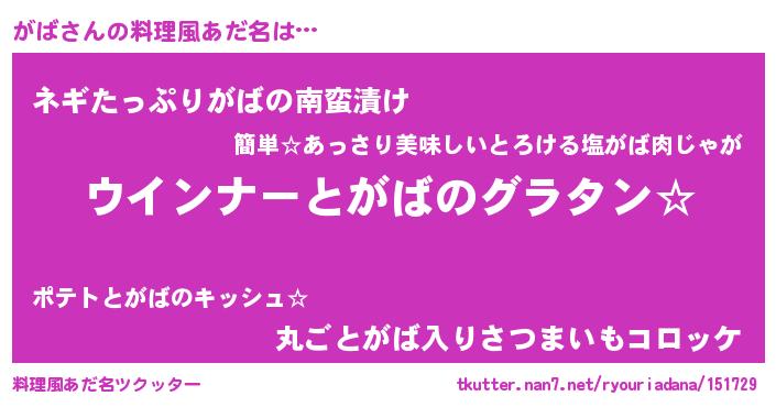 | ヘコむあだ名 | 『なまこ酢』『がばもー』『がば太郎』 |